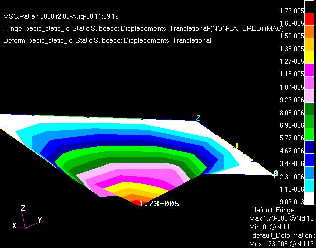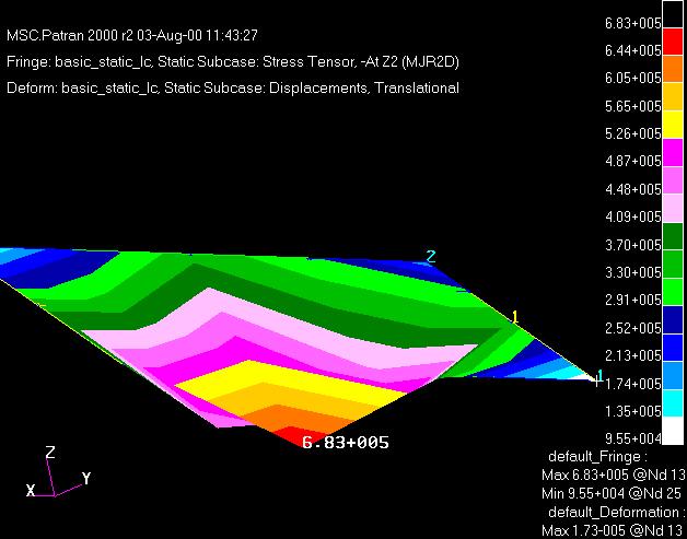| OUTPUT | maximum principal stress on the lower surface at the plate centre (point E) | TARGET | 0.802 MPa (analytic) |